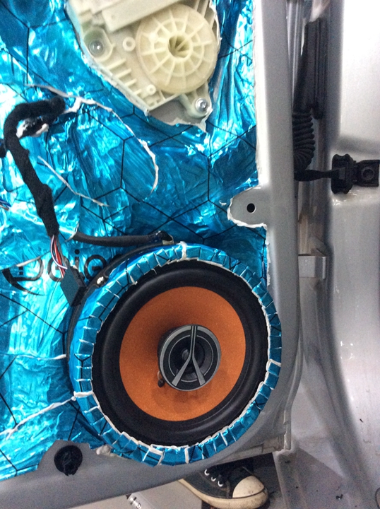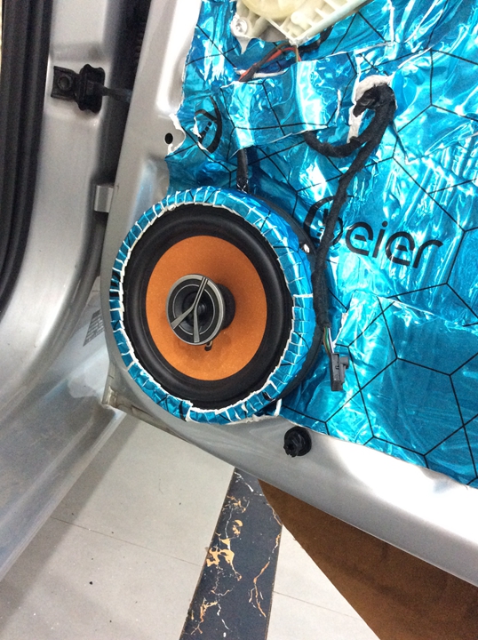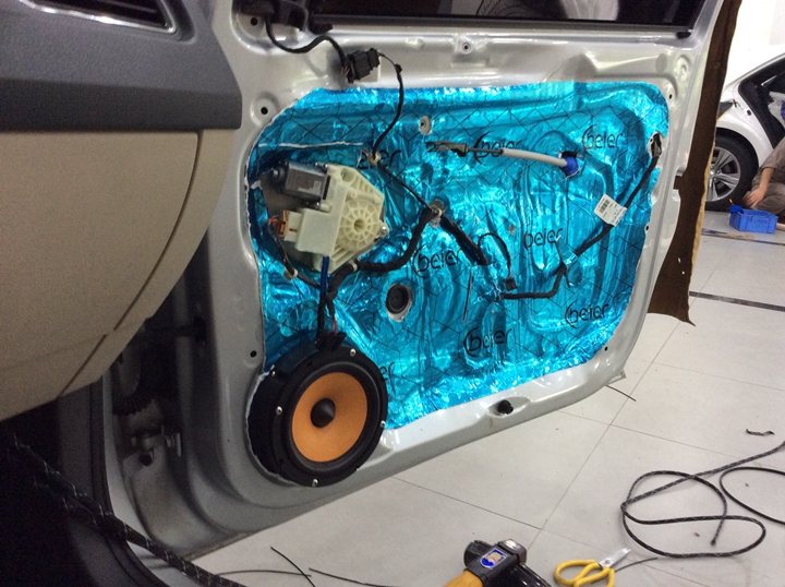 2.通過隔音、減振材料對汽車進(jìn)行減振及隔音處理,降低汽車鈑金結(jié)構(gòu)傳遞的噪音,提高駕駛舒適度。對門板隔音, 車門的隔音處理里外雙層要貼上的隔音材料,在車門的兩層鋼板上分別貼上一層頂級隔音材料,可以起到良好的隔音、制振、密封的多重作用,封閉的車門腔為喇叭提供了一個音箱箱體,使喇叭的性能得到充分發(fā)揮,尤其對改善聲場的中低頻效果作用巨大.
