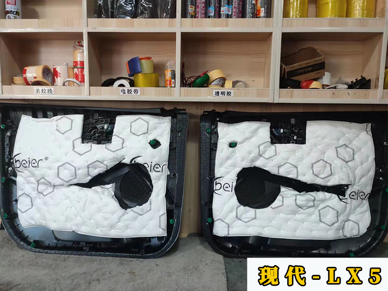 可以看到,原車(chē)的一個(gè)隔音是很有限的,僅僅是一層防水膜。而且門(mén)板的鋁板太薄也是隔音不好的一個(gè)原因,這是做的第一層隔音,貼在內(nèi)壁。