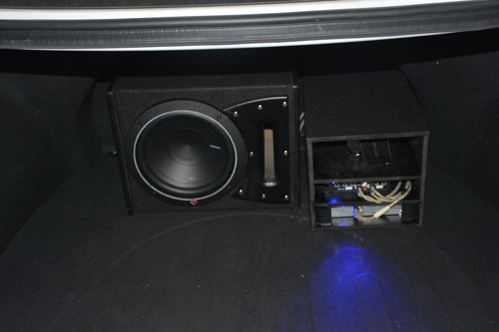 低音方面,是以前車子拆下來(lái)的來(lái)福P2雙音圈的10寸低音。搭配了圣美歌單路功放。