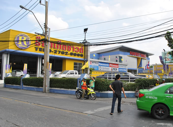 看完車(chē)展上的響改裝車(chē)后我們前往泰國(guó)音響改裝店Rocketsound參觀,這家店的規(guī)模與國(guó)內(nèi)大型的4S店相當(dāng),分產(chǎn)品展示銷(xiāo)售區(qū)和改裝車(chē)間