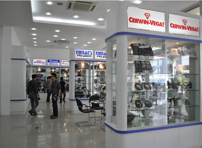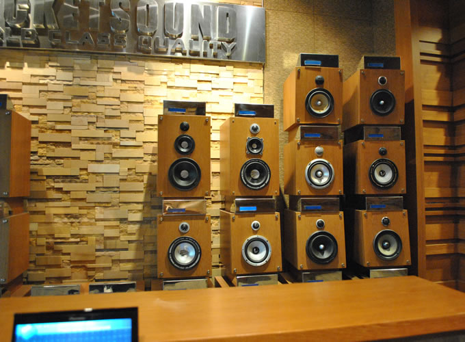 產(chǎn)品展示車(chē)間裝修精致,罷滿了各種品牌的音響器材,