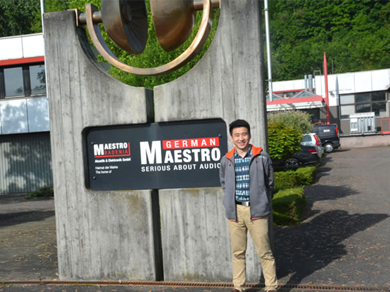 一同前往的還有德樂(lè)音響的技術(shù)總監(jiān)尹飛(右二),還有曼斯特中國(guó)區(qū)總代理坤耀公司總經(jīng)理