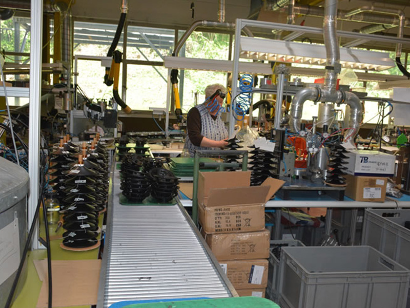 這是把喇叭盆與盆架進(jìn)行組裝的工位,