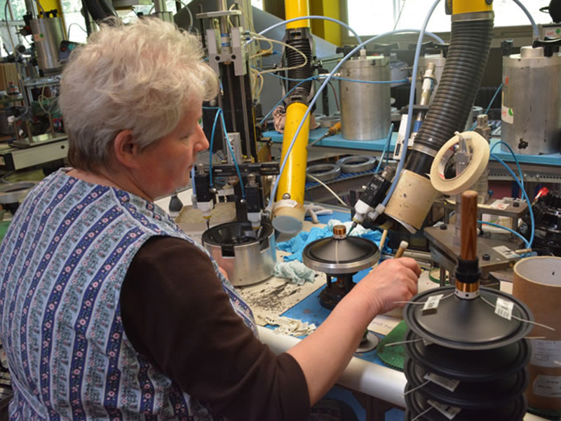 先進(jìn)入的是耳機(jī)生產(chǎn)車(chē)間,曼斯特生產(chǎn)的耳機(jī)全是監(jiān)聽(tīng)級(jí)別的,價(jià)格較高,在中國(guó)很少見(jiàn),是國(guó)際汽車(chē)音響賽事指定賽前裁判試聽(tīng)專(zhuān)用耳機(jī)