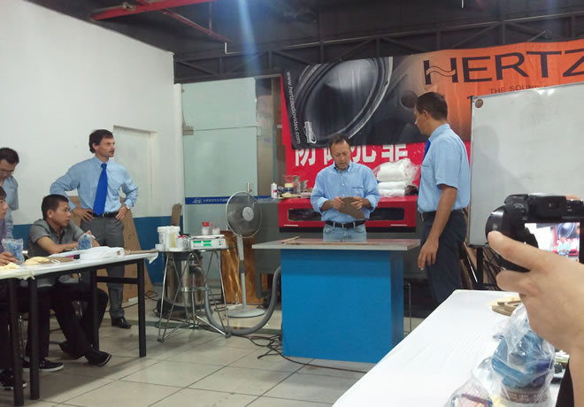 5月歐洲學(xué)習(xí)之旅時(shí)對(duì)意大利音響改裝工藝之所驚訝!所以特邀請(qǐng)他們前中國進(jìn)行培訓(xùn)。而今參加意大利音響工藝培訓(xùn),齊納子動(dòng)手培訓(xùn)的大師,并帶來改裝工具及一些特別材料,讓我們大開眼見?。?!